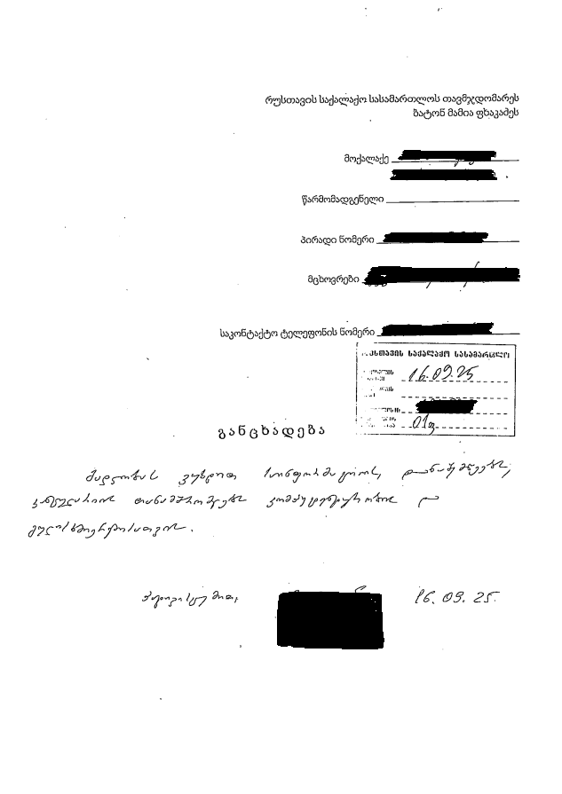 რუსთავის საქალაქო სასამართლომ კიდევ ერთი მადლობის წერილი მიიღო.